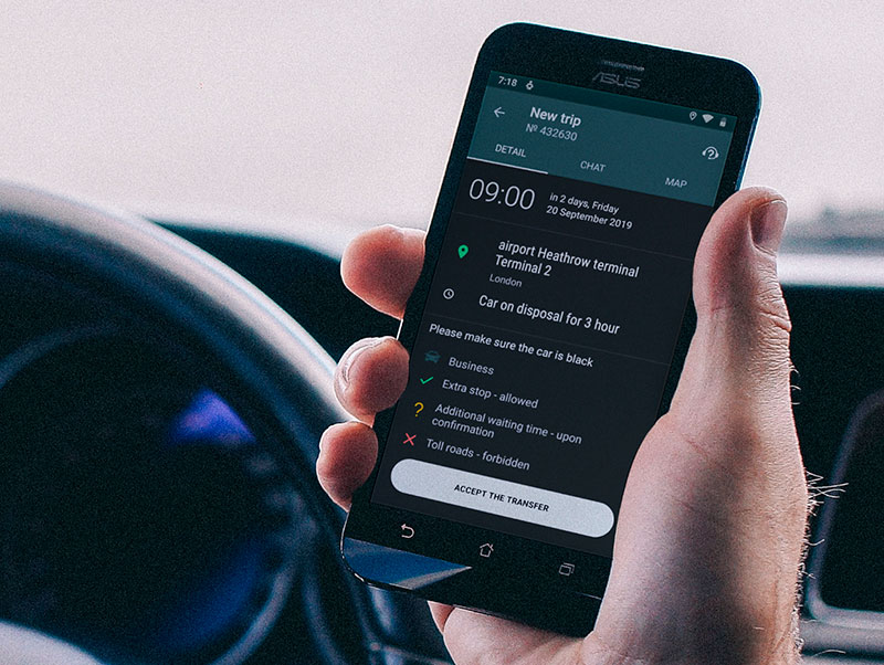 Позволяет пассажиру пользоваться нашим сервисом с максимальным удобством: оно напоминает о поездках, показывает местоположение водителя на карте и автоматически определяет номер поддержки в зависимости от страны.
