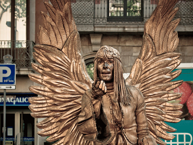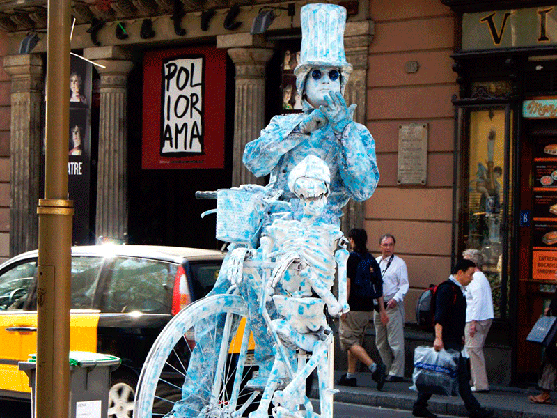 Загадка: где в Барселоне обычное дело увидеть всадника без головы, через 100 метров нимфу, а ещё чуть дальше скелет на велосипеде? Правильный ответ «на улице». Не на каждой, конечно, а на улице Рамбла.