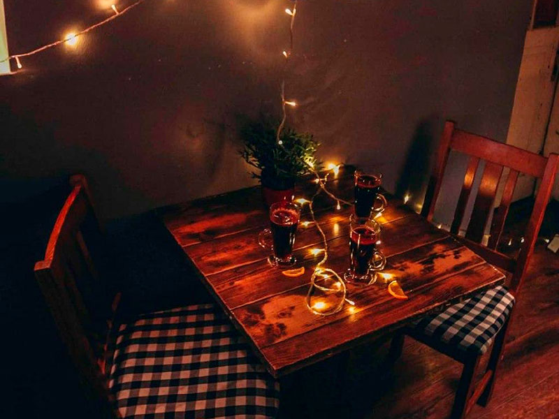 Название кафе переводится как “Ежик в тумане”, соответственно, не остается без внимания туристов с пост-советского пространства. “Ежик в тумане” — это, как намекает название, маленький уютный бар с обширным выбором алкоголя, фастфудной закуской и кучей атрибутики с ежами.