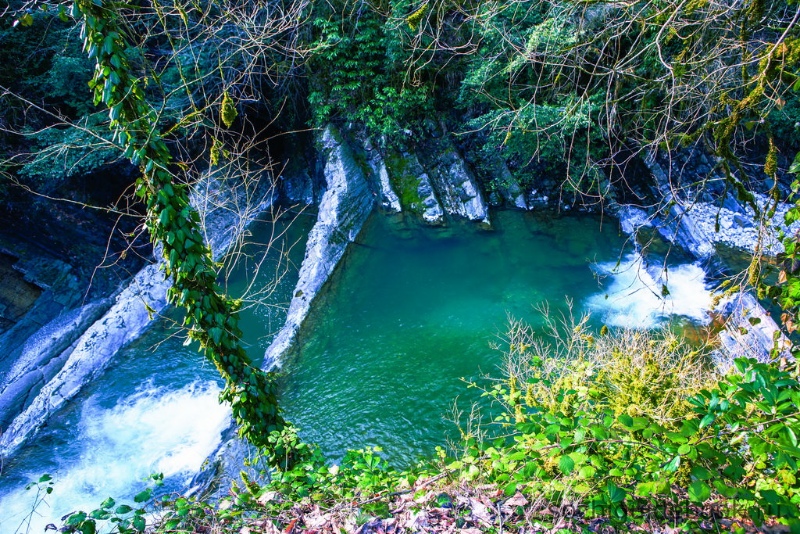Посёлок Дагомыс располагается на одноимённой реке. Если проехать в сторону гор, то можно попасть в уникальное место. Горные породы образовали поперёк реки ступени и террасы, по которым перекатывается бирюзовая вода, наполняя каменные ванны. Купаться тут можно круглый год.