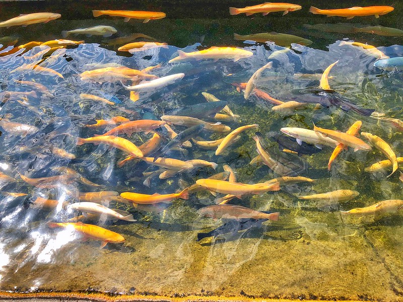 Обязательно загляните в форелевое хозяйство «Адлер». Это одно из самых крупных хозяйств в России. Здесь можно прикупить красной икры, живую или копчёную форель. А ещё сходите на экскурсию, во время которой показывают, как растут мальки, и как отличать форель Дональдсона от форели Камолоопс. Можно и порыбачить, взяв удочку на прокат.