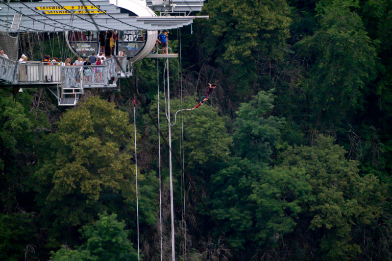 Если вам вдруг стало скучно и очень хочется острых ощущений, то поезжайте в парк экстремальных развлечений Skypark AJ Hackett Sochi. Это единственный парк в России. Получить свою дозу адреналина можно прогулявшись по подвесному мосту, полетав на зиплайне над ущельем или прыгнув на канате с самой высокой банджи-площадки в стране.